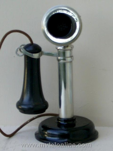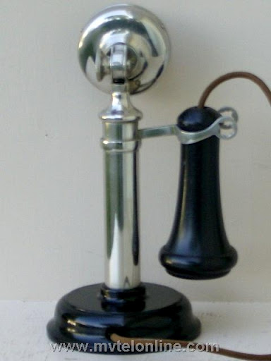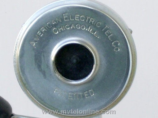 American Electric manual candlestick telephone. Similar to #2 but completely different. Very heavy and well made example. The base is cast iron painted black and everything above is nickel plated brass. Nice marked, beveled transmitter.
