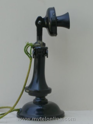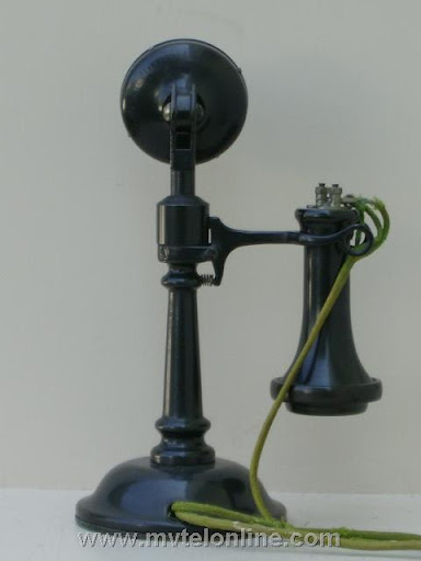 Western Electric #10 manual candlestick telephone. This antique telephone is nicknamed a "Tapered Shaft. These were made after the the Potbellies and before the straight shaft. The phone is brass finished in black paint. The receiver is a Western Electric ost "pony".
