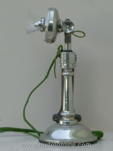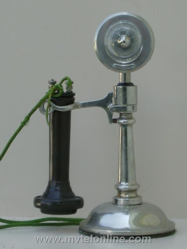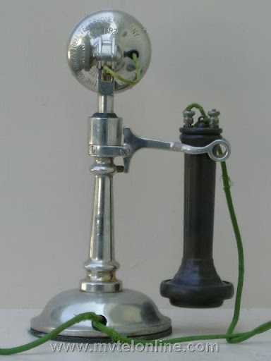 Western Electric #10 manual candlestick telephone. This antique telephone is nicknamed a "Tapered Shaft. These were made after the the Potbellies and before the straight shaft. The phone is brass that is nickel plated. The receiver is a non Western Electric ost "long pole".