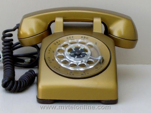 Western Electric 500 desk phone. This phone is a special order factory painted 12 dark gold. The color of the cords is "neutral". I found this phone never used in it's original box.