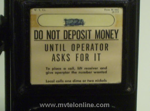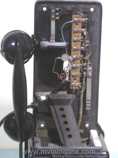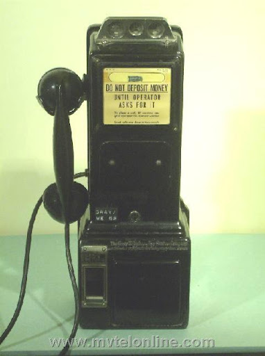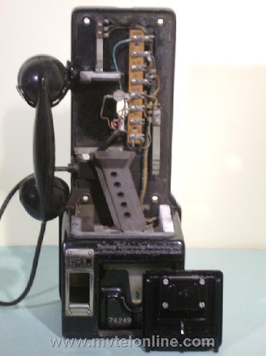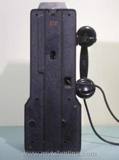 Western Electric 52C, manual post-pay payphone or paystation. This is an early conversion by Western Electric of a 2 piece early Gray 50K (or similar) to a handset telephone. All operation would have been operator controlled.
