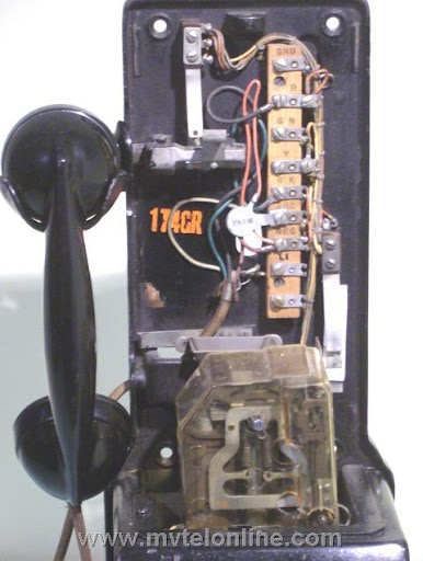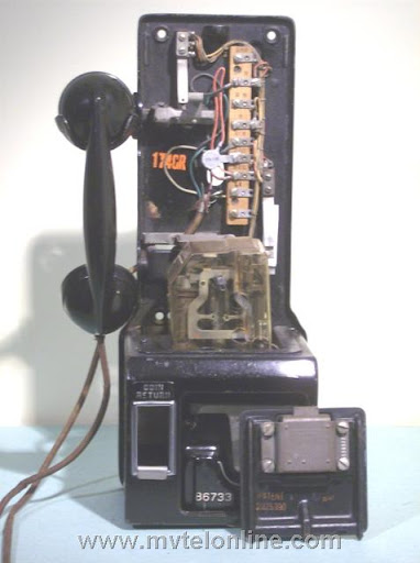Western Electric 174GR, 10 Cent Automatic prepay payphone or paystation. This is a Western Electric upgrade from an original Gray 2 piece 5 cent payphone such as a 150G. Note the clear coin relay shield. This antique telephone came from Lynbrook NY.