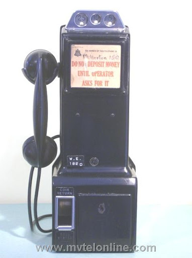 Western Electric 182D, 5 cent manual post-pay payphone or paystation. The full operation of connecting a call would have been handled by the operator.