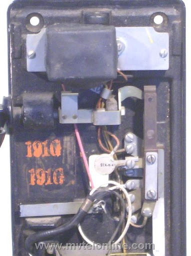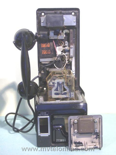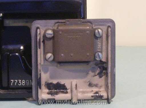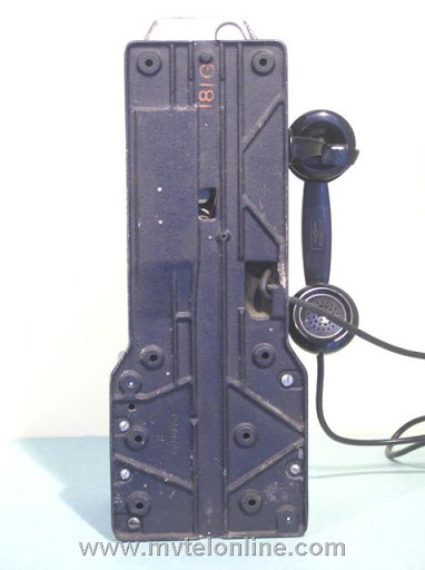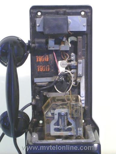 Western Electric 191G, 10 cent automatic prepay payphone or paystatoin. Western Electric upgraded it from a 5 cent 181G. Note the clear plastic cover over the coin relay and the rubber boot over the induction coil. This phone came from Pennsylvania.