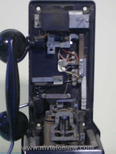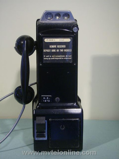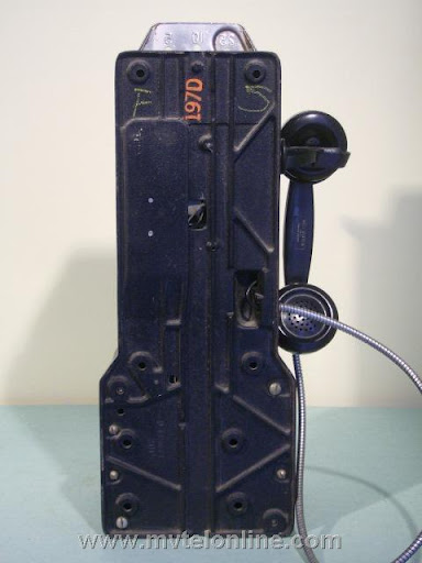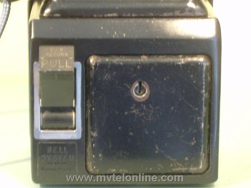 Western Electric 197D, 10 cent manual prepay payphone or paystation. The Western Electric 197 was their first to have both a standard coin return setup and an anti stuffing coin return bucket. This antique telephone operated by the user lifting the handset, depositing 10 cents and talking to the operator. She would then connect the call.