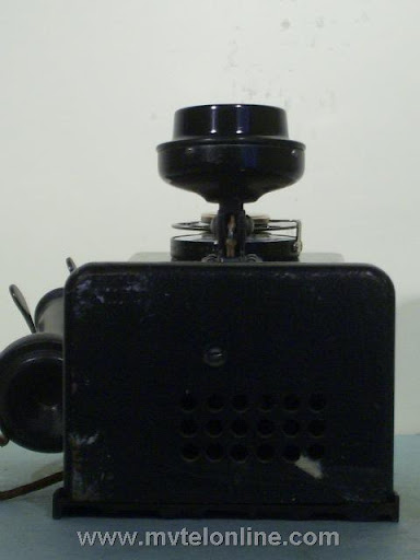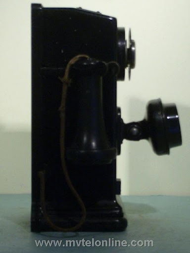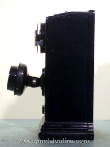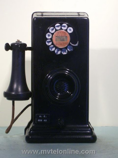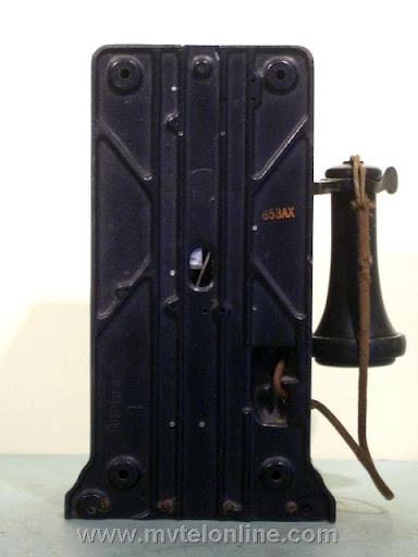 Western Electric 653AX, during World War 2 when resources were limited Western Electric fashioned these wall phones from mostly obsolete parts (#2 dial, cast paystation upper housing) and made a useful telephone. The 653AX is a complete working antique telephone with built in ringer and induction coil. Equipped with 143 receiver and the 635 "bulldog" transmitter.