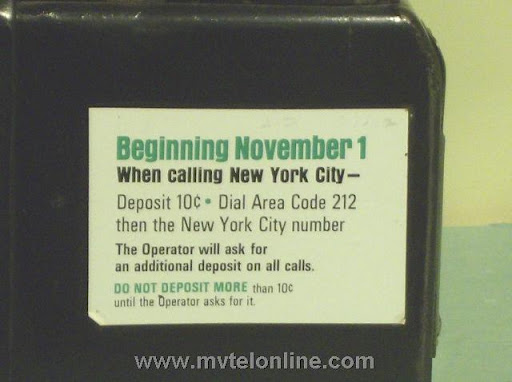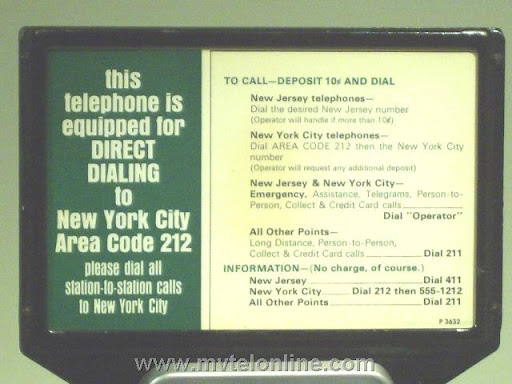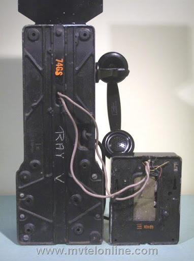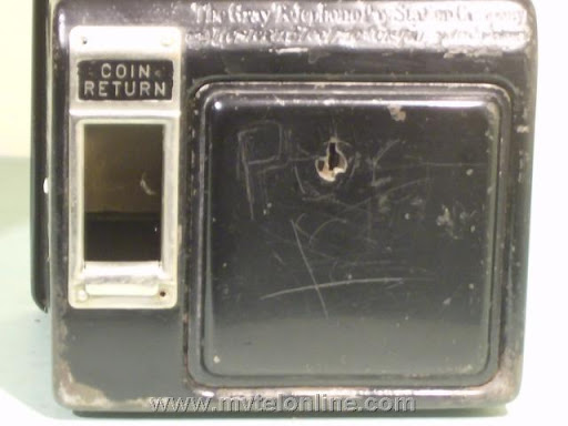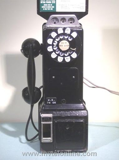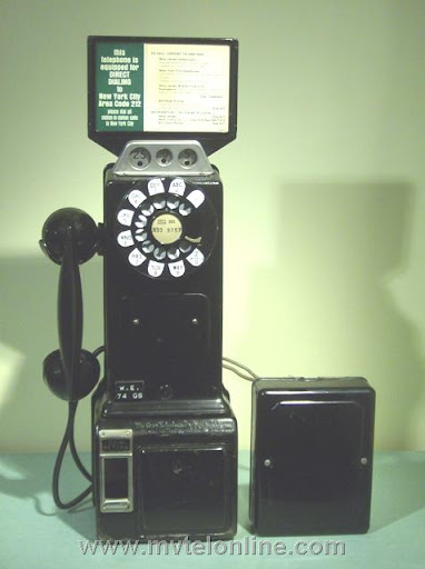 Western Electric 74GS, 10 cent automatic prepay payphone or paystation. The 74 series is a Western Electric conversion of a 5 cent 50G antique telephone to a 10 cent model with a handset. This phone came from New Jersey. It came to me with it's original .original subset still attached. Note the instructions on dialing to New York City.